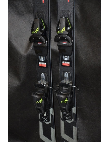 Wiązania Fischer-FJ4 (0,75-4,5 DIN), przesuwny tył i przód. Narty w dobrym stanie posiadają normalne ślady używania. Krawędzi, pozostało około 80%.