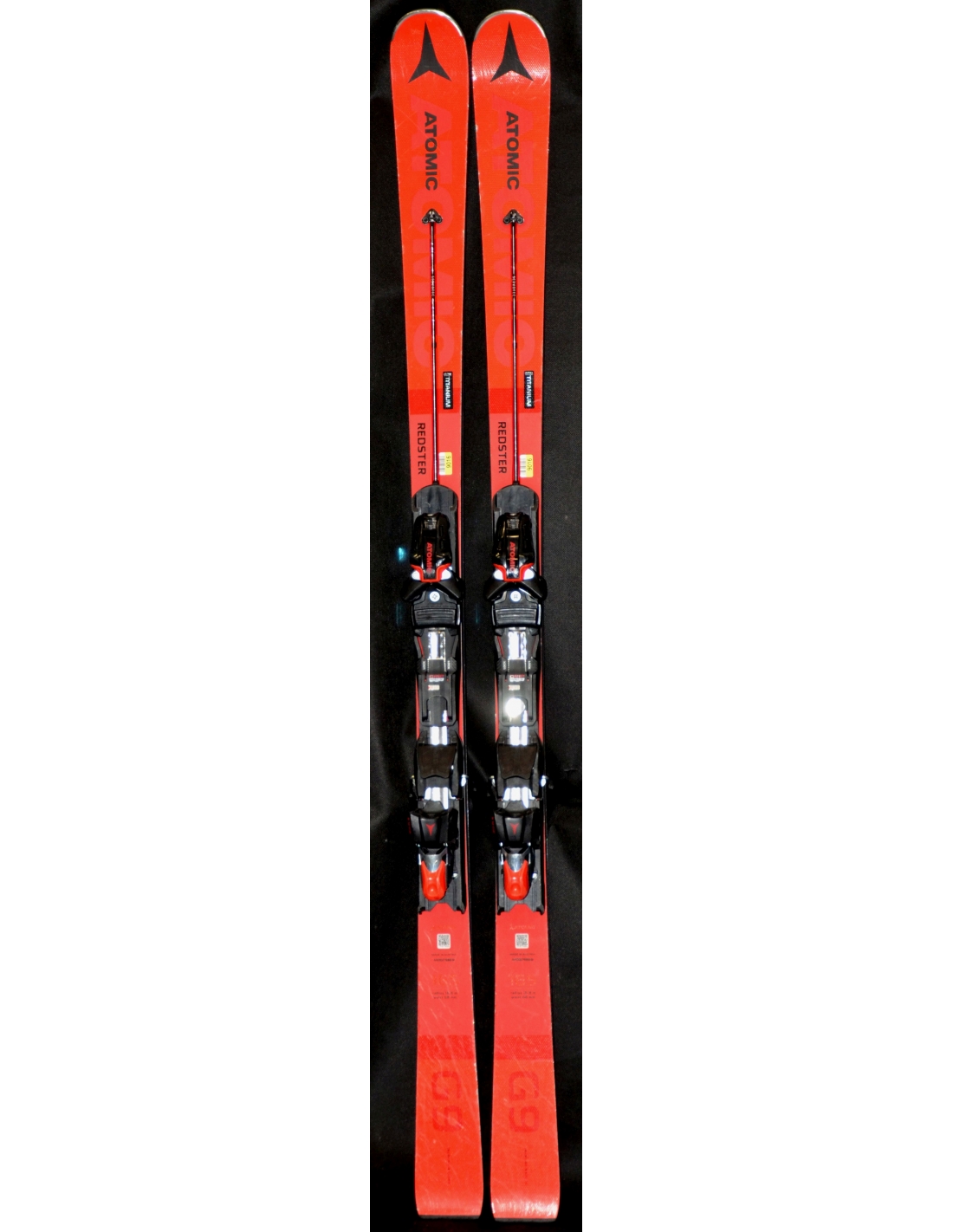 Atomic Redster G9 to flagowy produkt linii Redster. Narty zostały stworzone na przygotowane trasy i naszpikowane najnowszą technologią znaną z zawodów Pucharu Świata. Taką jak technologia Servotec. Swego rodzaju wspomaganie układu kierowniczego w nartach. Większa reaktywność podczas skrętów i stabilność w trakcie prostych. Cieńszy i mocniejszy laminat Ultra Titanium Powered — początkowo przeznaczony wyłącznie dla nart certyfikowanych przez Międzynarodową Federację Narciarską — biegnie od jednej ścianki bocznej do drugiej, zapewniając większą stabilność, sztywność skrętną i przyczepność krawędzi. Te dwie cechy zwiększają precyzję kontroli i stabilność, niezależnie od tego, czy uczestniczysz w zawodach, czy pokonujesz duże, długie zakręty podczas zjazdów ze stoku. Wiązania Atomic X12 TL (4-12 DIN), przesuwny tył i przód. Narty w bardzo dobrym stanie posiadają widoczne ślady używania. Krawędzie grube pozostało około 90%.