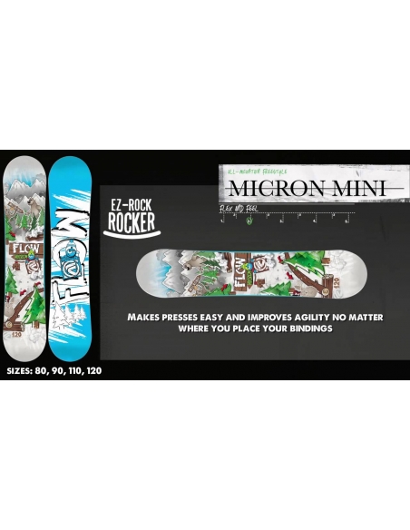 Micron Mini to snowboard przeznaczony dla najmłodszych dzieci, które zaczynają przygodę ze snowboardem. Daje im to niezbędną stabilność i łatwą obsługę. EZ-Rock Rocker - delikatny rocker z wypukłym ślizgiem między wiązaniami a pod insertami camber. Super łatwy kształt o żywym charakterze niezwykłej stabilności. Deska w dobrym stanie posiada normalne ślady używania, krawędzie grube pozostało ich około 80/90%. Dedykowana pod wagę od 20 kg do 27 kg.